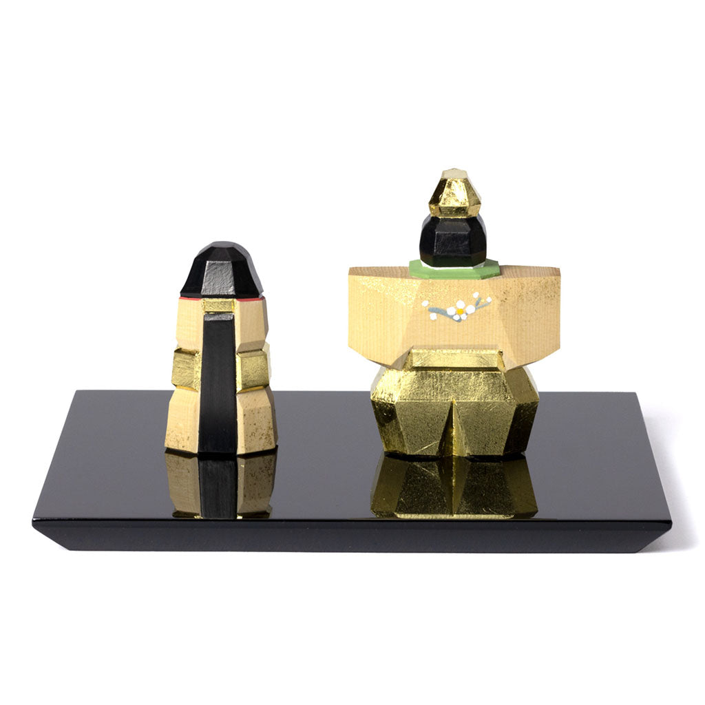 昔ながらの伝統を忠実に引き継ぐ鐡山の作品。華やかな金箔のデザインと、木地を残したシンプルかつ美しい彩色が特徴で、年月とともに変化する木目の様子をお楽しみいただけます。