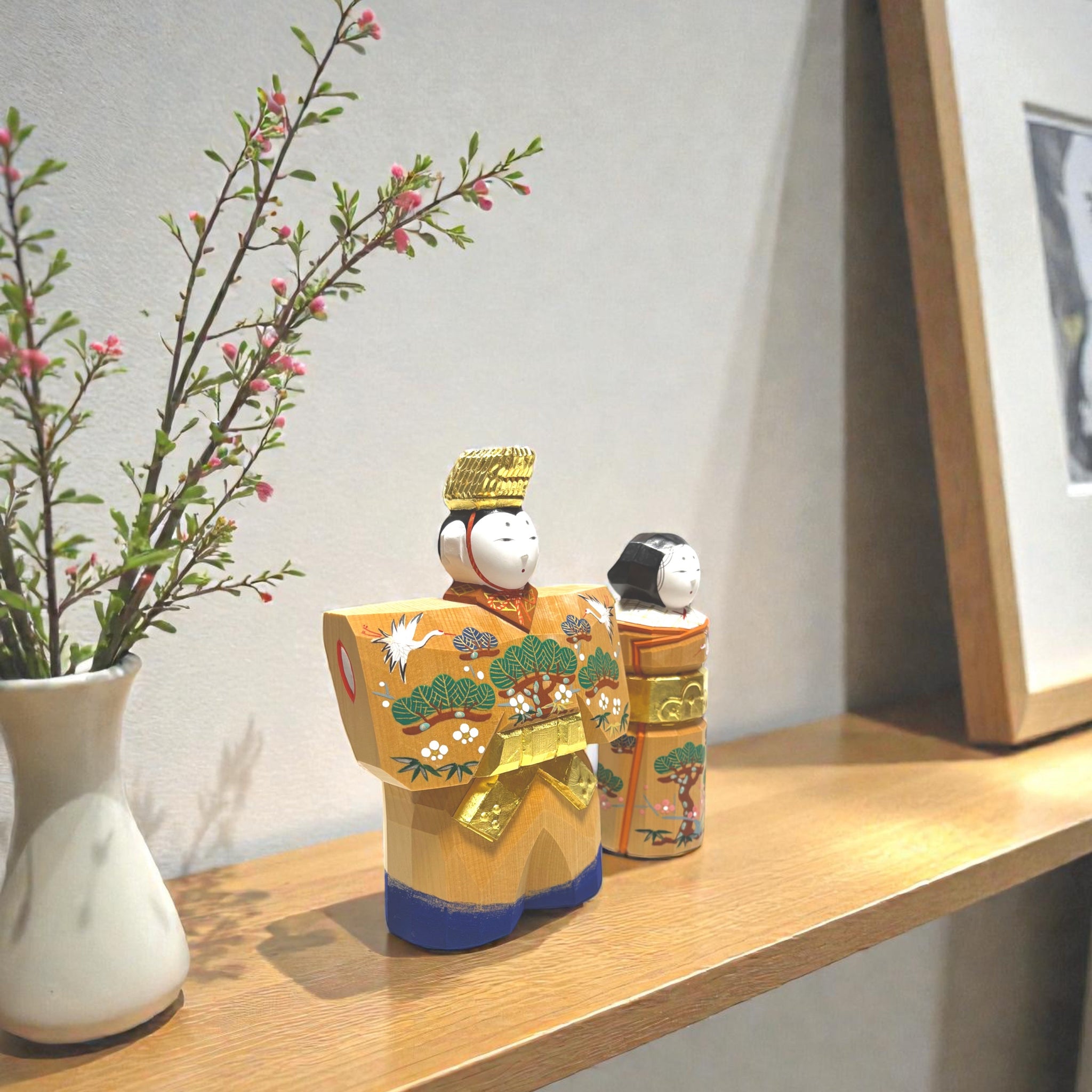 奈良一刀彫ならではの凛とした確かな存在感を放つ立雛。インテリアにもぴったりの品格あるひと組です。
